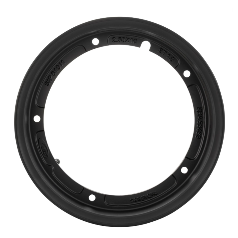 Jante Tubeless SIP com largura 2.50 e 10″ de diâmetro, em alumínio para uso com pneu 100/90-10 e 100/80-10.